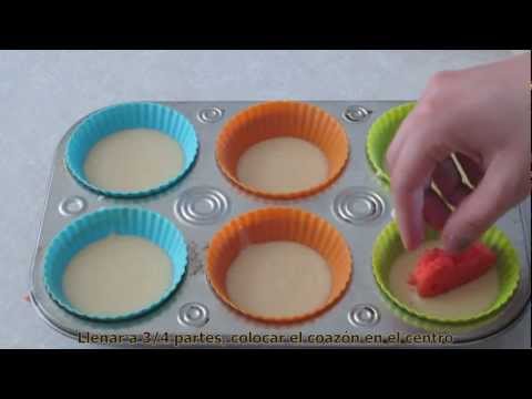 Receta que te mostrará de forma rápida como preparar unos deliciosos Cupcakes rellenos de corazón, receta de un postre.