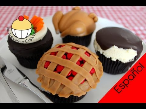 ¿Cupcakes que parecen comida de verdad? ¡ME ENCANTA! Así que aquí les traigo un Pavo Rostizado de Acción de Gracias / una cena de Pollo, muy completa, con cupcakes de puré de papas, cupcakes con habichuelas y zanahorias y un pastel de cerezas para el postre!